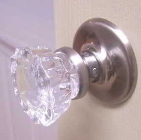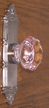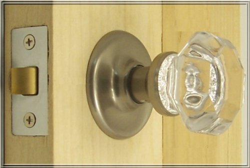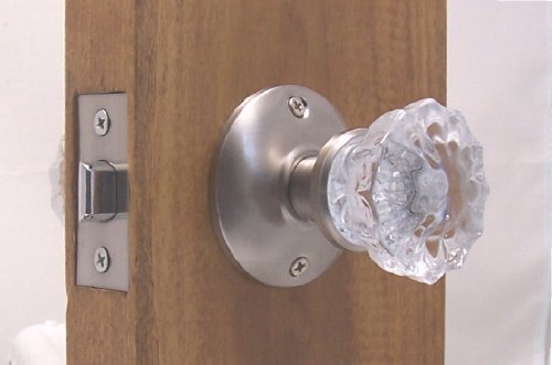 Our original Depression Crystal Passage knobs, perfect Reproductions - 1900s antique knobs, so perfect, they are interchangeable with antique hardware. To fit pre-drilled doors with standard 2-3/8, see attachment. This set will arrive with all the hardware needed to install in modern pre-drilled door with. The retrofit hardware contains: Tubular Latch set for with Striker Plate and matching screws, 2-1/2" Rosettes made the fit this particular knob and matching screws, Two hand made wood adapters, to Retrofit Modern Pre-drilled doors and threaded Spindle. Installation Instructions will be included, although they are this simple: (1) Install Latch, (2) Glue wood adapters with hot glue gun , (3) Secure door plates by tightening the Knobs , (4) drill pilot holes and fasten door plates with wood screw , (5) Then Adjust the door knobs and Bolt securely to the square side of the spindle. TOOLS NEEDED TO INSTALL THIS SET, one 3/16" slotted screwdriver and one Phillips head screwdriver. one hot glue gun (wood glue if glue gun is not available) power drill to drill pilot hole in the wood adapters. This set is also available in other finishes on Amazon listings: Oil Rubbed Bronze B003QKCSEC, Antique brass B003QIZC10, Polished Brass B003QJ5QKQ or Polished Chrome B003QKUZW4. FYI: We have developed retrofit kits for over 50 years, this is our original complete passage knob set, the lowest price set to install in modern pre-drilled doors. The spindle is pre-set to fit standard doors that are 1-3/8 to 1-3/4" thick Tubular Latch and Depression Crystal Knobs are the same as in the next price point. It is more labor intense to install the wood adapters then our more expensive sets, which we have developed. Great if you install yourself.